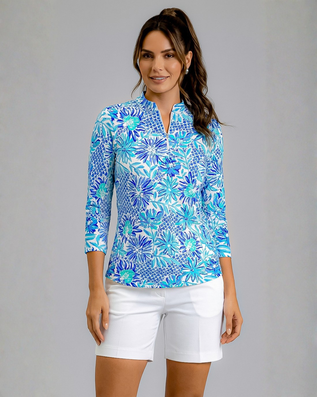Bella Jardin 3/4 Sleeve Zip Mock Top 68Z25