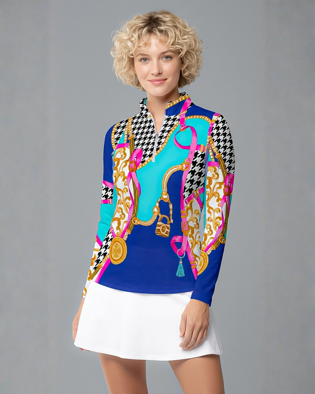 This elegant design incorporates houndstooth alongside baroque paintings. The grandeur, sensuous depth, and emotional liveliness...