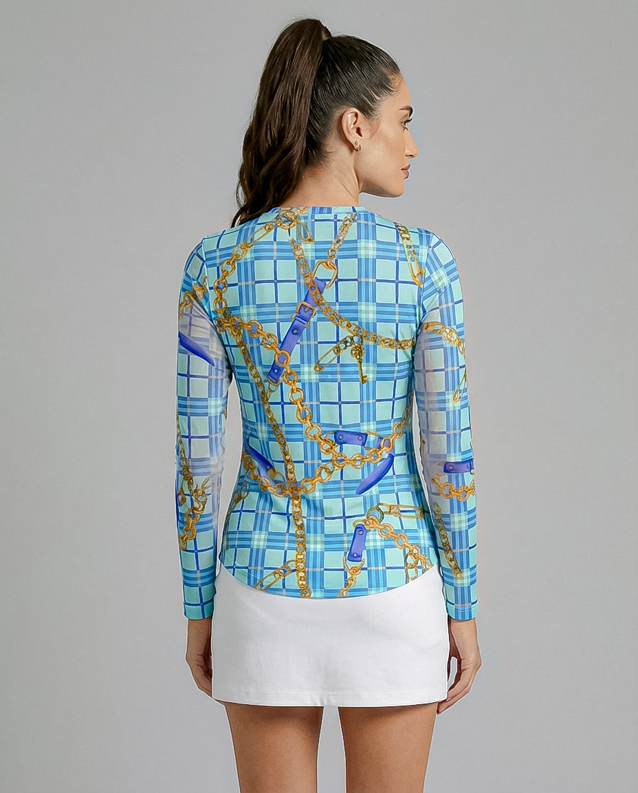 Check & Chain Long Sleeve Crew Neck Top 83Z16