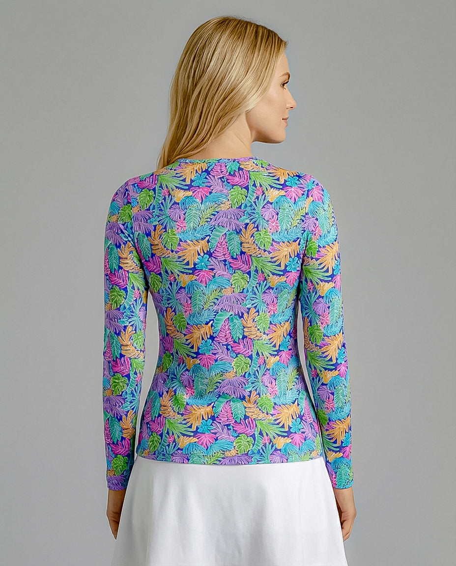 Tropical leaves set a mood for outdoor activities like golf, tennis, and picnics. Enjoy this print and feel energized.