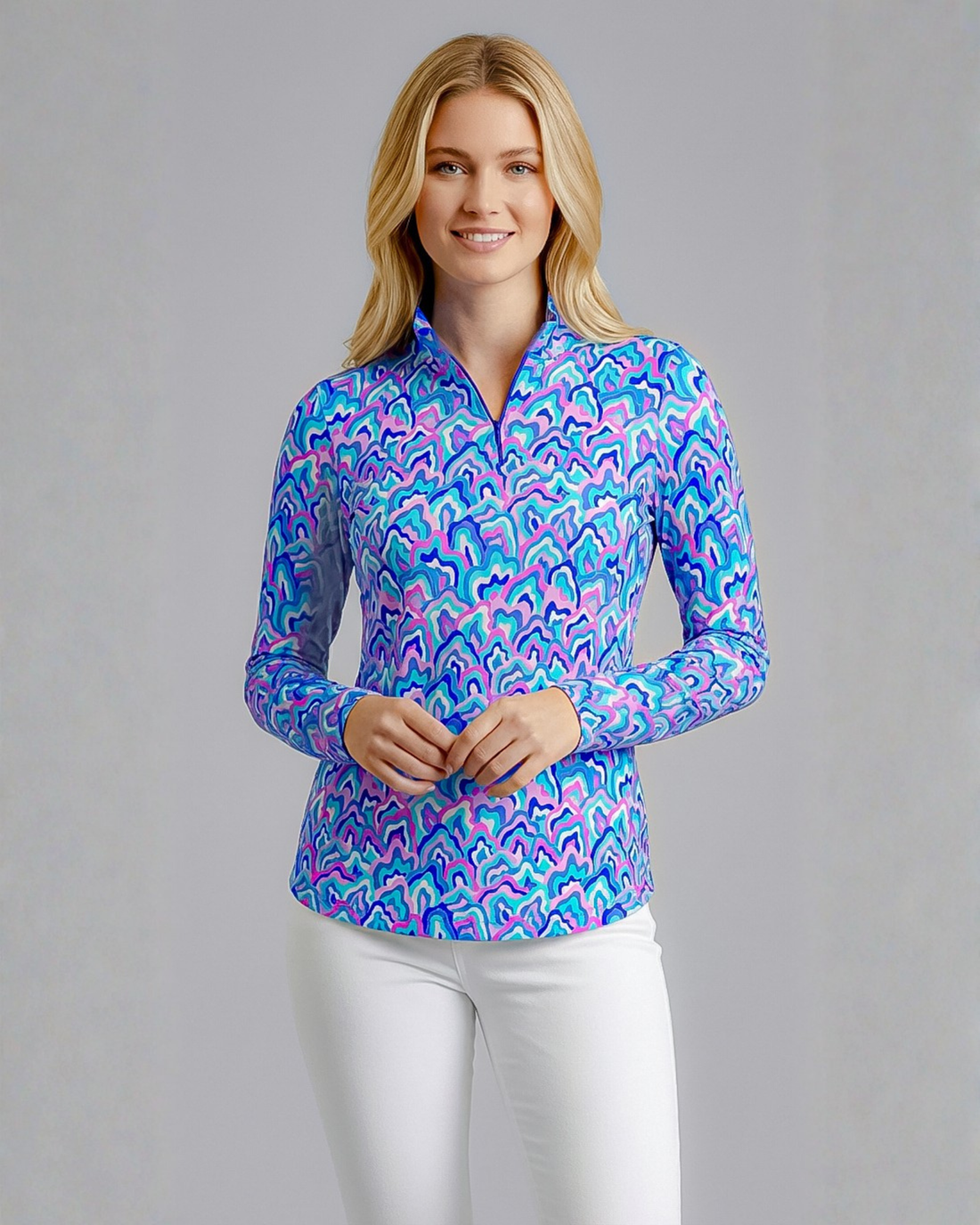Out Of Course Long Sleeve Zip Mock Top WITH PIPING T86Z54