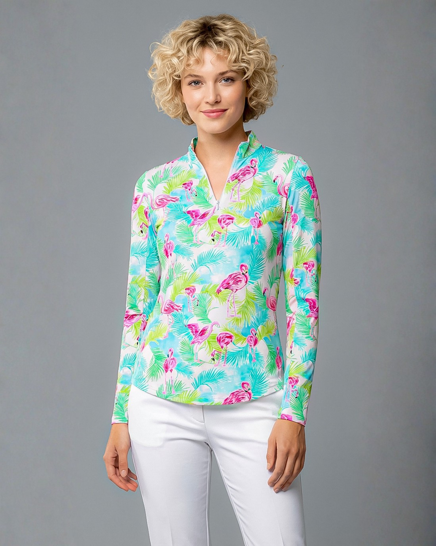Flamenco Long Sleeve Zip Mock Top 86Z40