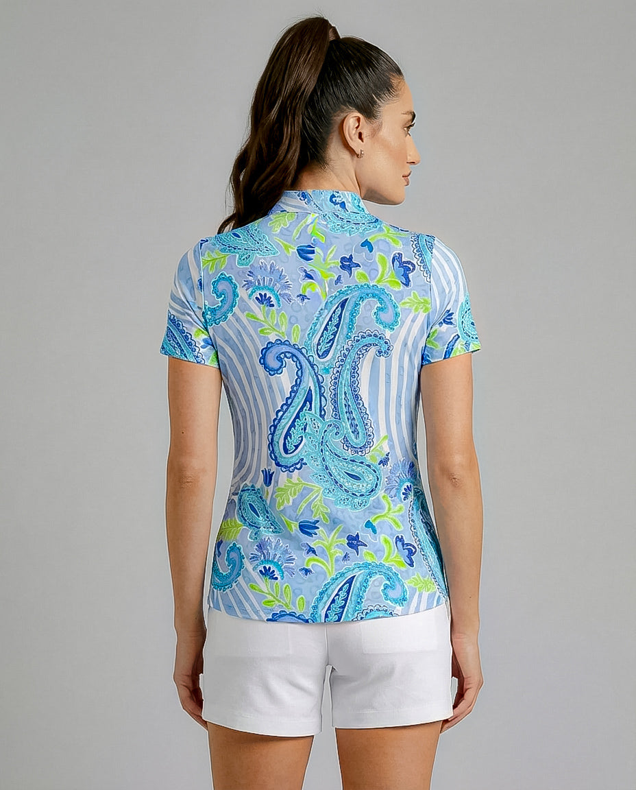 This dramatic print is a piece of art. The colorful paisley placement is focused with a background blissfully supportive to give the wearer a feeling of being calm and cozy.