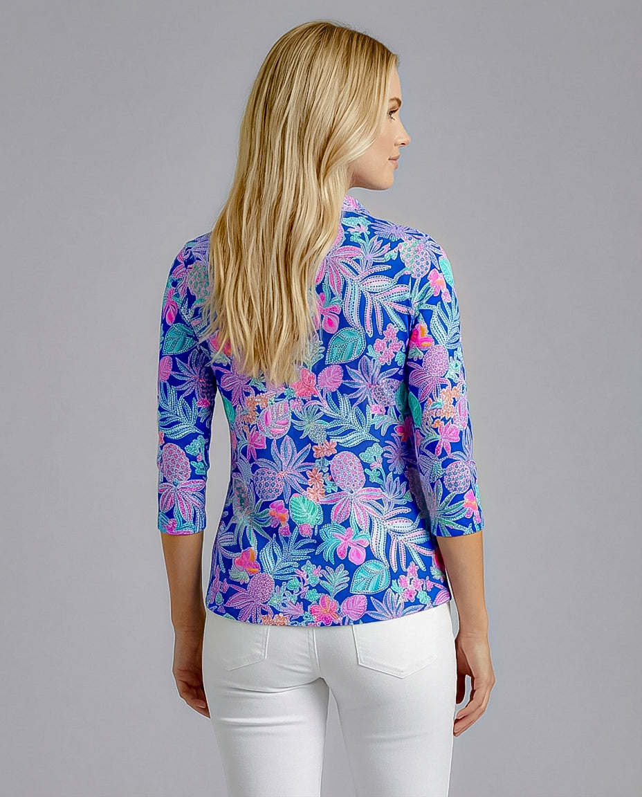 Tropical Basket 3/4 Sleeve Polo Top 48Z60